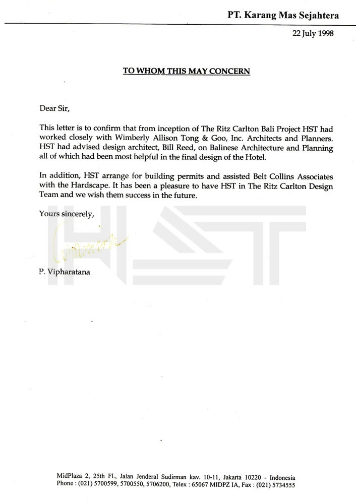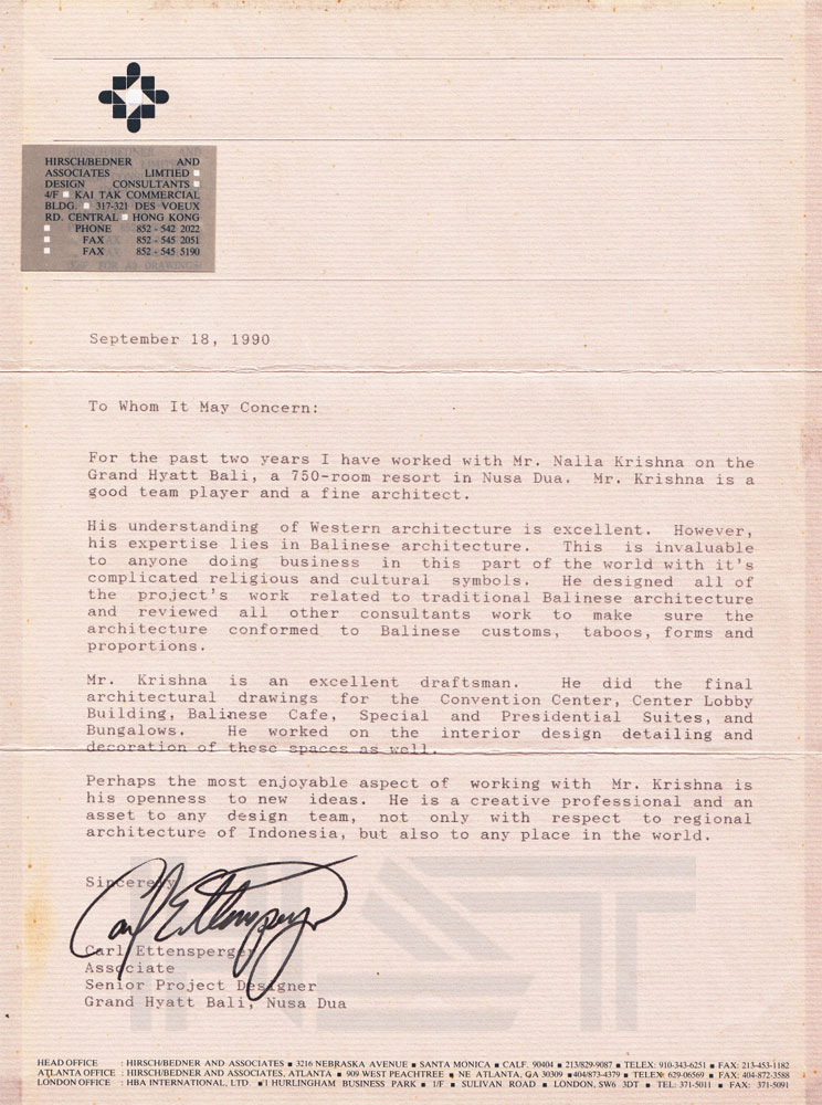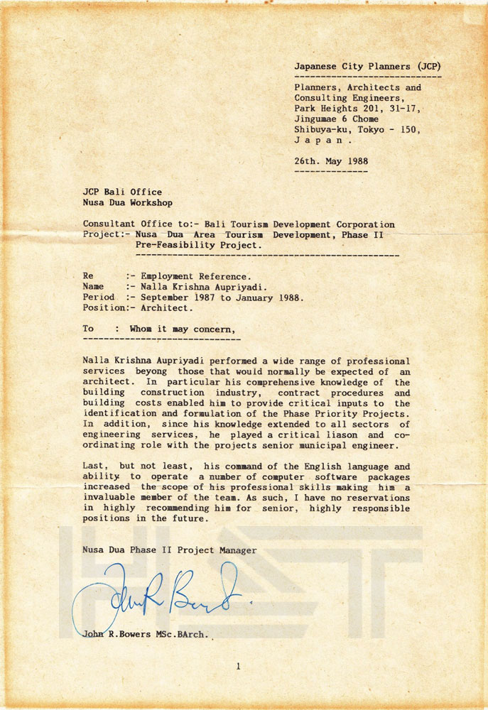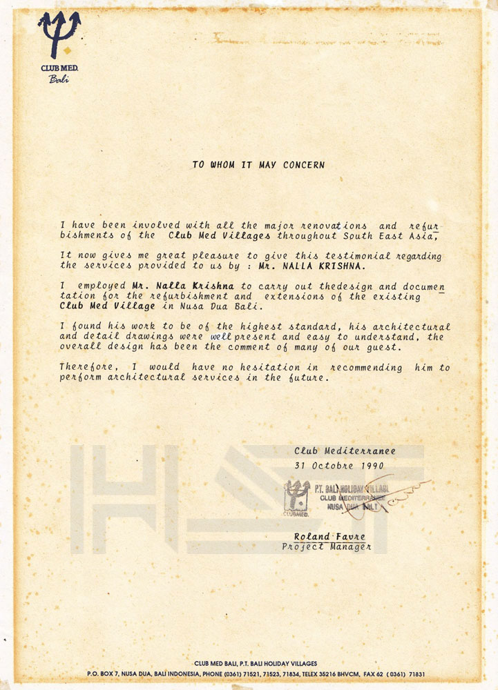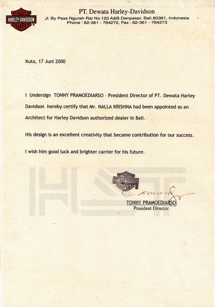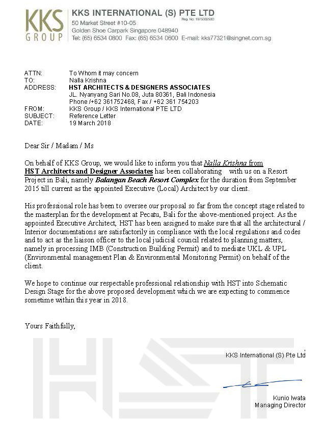 HST Architect is a Bali-based architectural firm providing integrated design and consulting services for a wide range of projects, with a strong focus on hospitality, residential, and commercial developments. The firm is led by its principal, Ir. Nalla Krishna, IAI, AA, GP, a First-Class certified member of the Indonesian Institute of Architects, a certified ASEAN Architect, and a Greenship Professional, bringing over 30 years of experience in the architectural design industry.