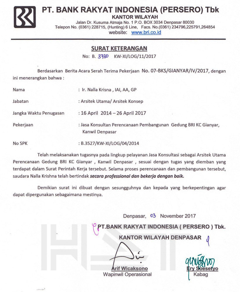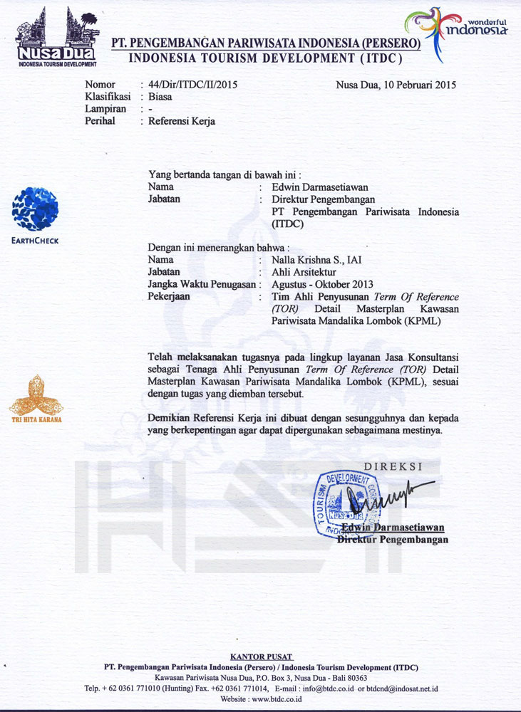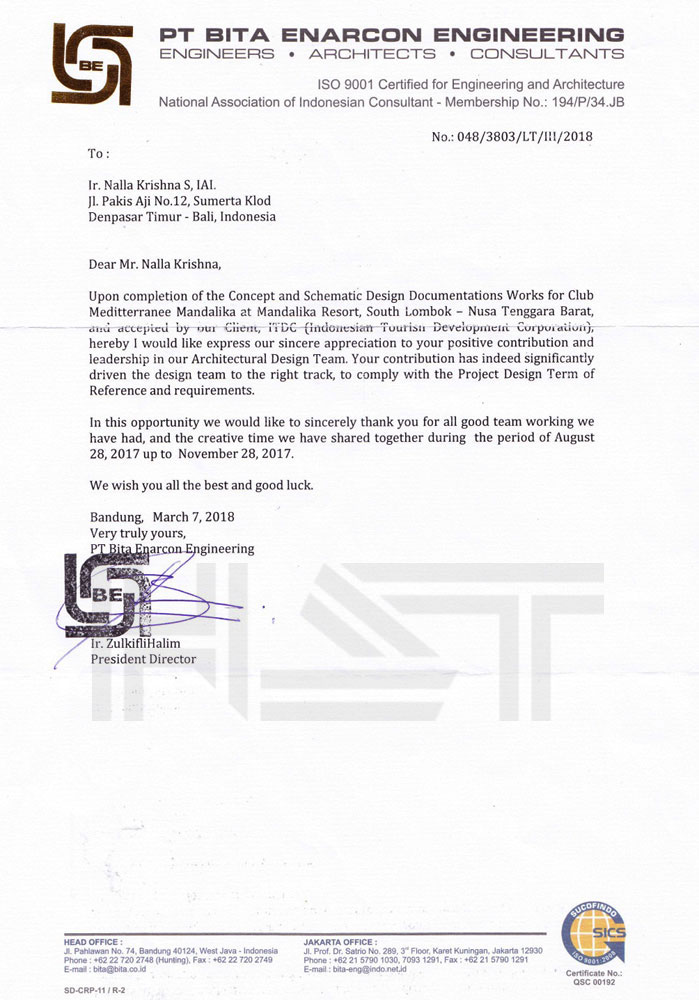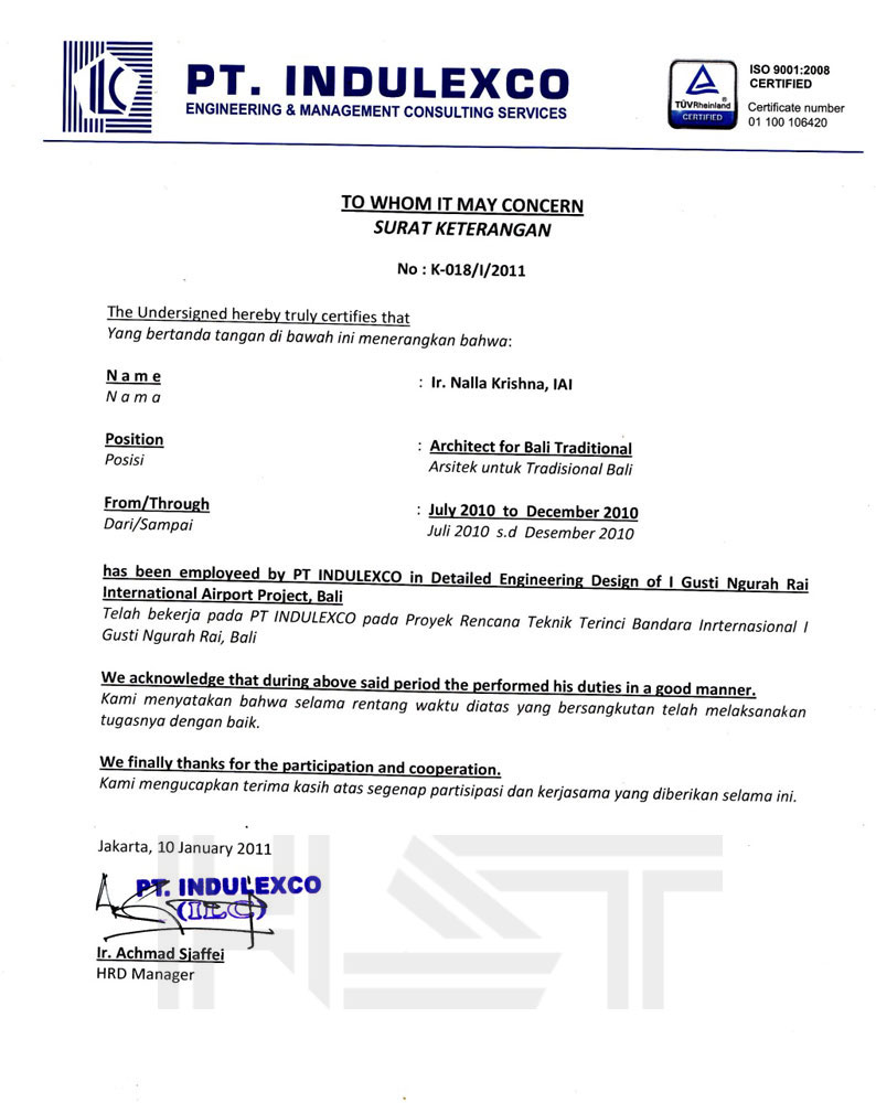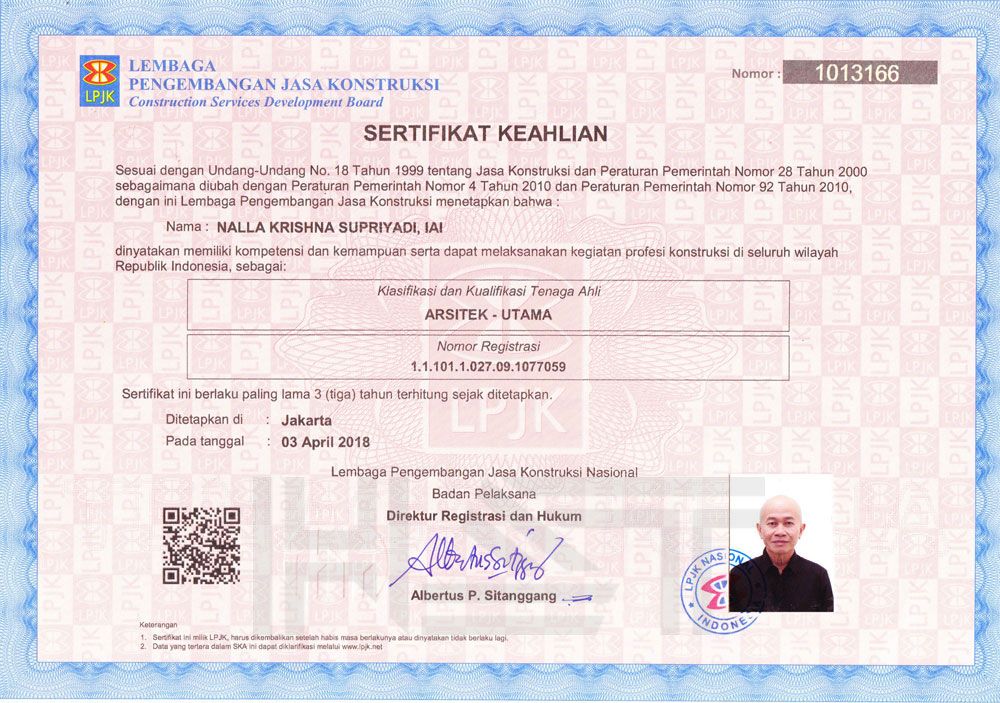 • Certified Indonesian Institute Of Architect - No. 1.1.100.1.027.09.013841 - Qualification First Class