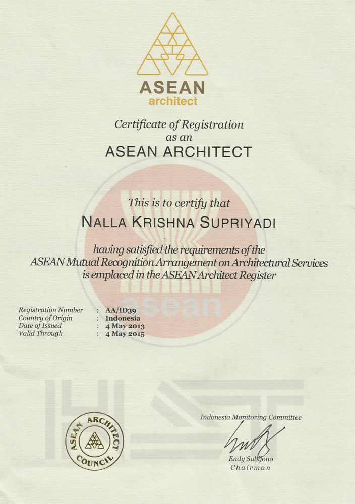 • Certified ASEAN Architect - No. AA/ID39