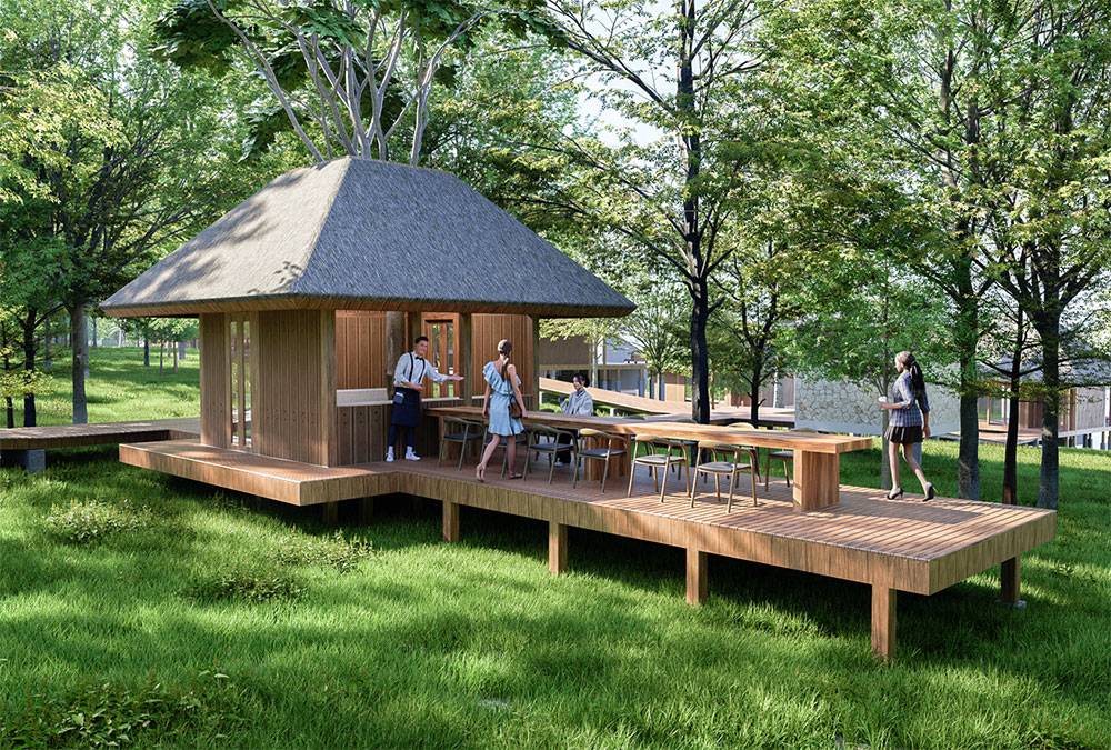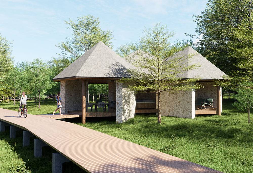 Landscape intervention is intentionally restrained. Only areas immediately surrounding buildings and outdoor facilities will be landscaped, while the vast majority of the island will remain preserved as pristine natural forest, potentially thousands of years old. Planting strategies prioritize native species, complemented by select flowering plants to introduce color and enhance arrival and gathering areas without compromising the island’s ecological integrity.