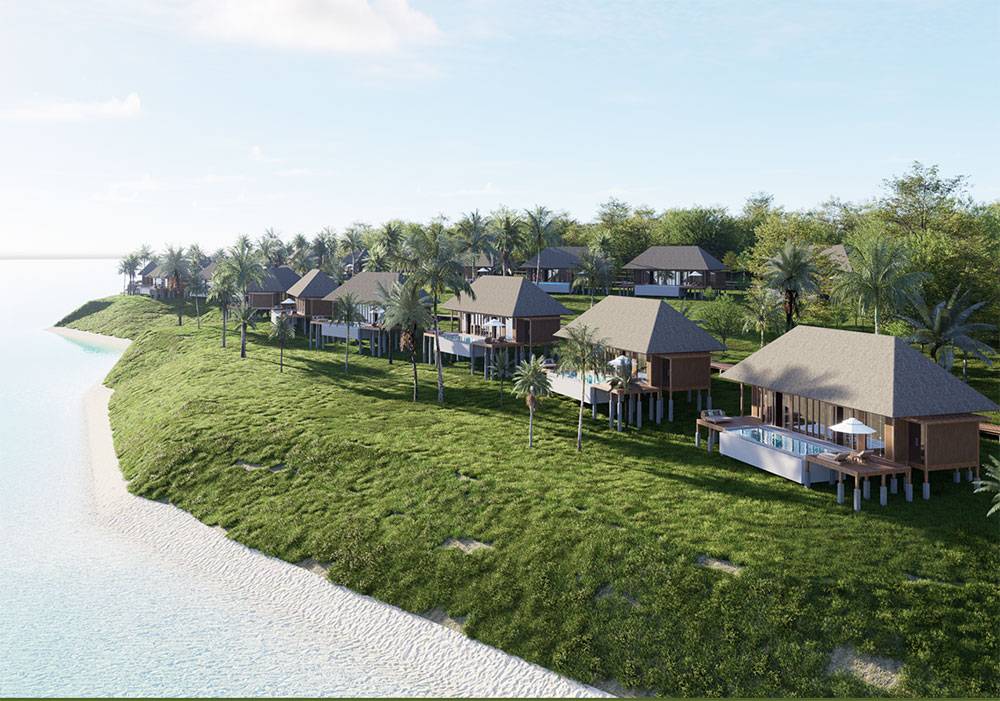 The masterplan responds organically to the island’s natural topography and vegetation density, with development concentrated toward the northern portion of the island—the only open area offering expansive white sandy beaches. Building placement follows the island’s gradual elevation, beginning from low coral cliffs with sparse vegetation and rising gently toward the denser forest at the island’s center. This approach minimizes tree removal while ensuring unobstructed views and a seamless integration between architecture and landscape.
