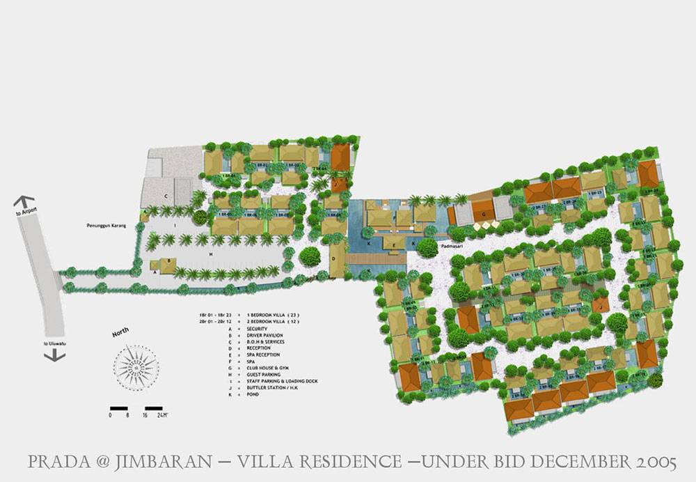 PRADA Jimbaran Estate is a planned 38-villa residential estate located in the prestigious coastal area of Jimbaran, Bali. Developed by Bintang Inti Persada of Jakarta, the project was conceived as an exclusive low-density villa community that combines privacy, tropical living, and refined residential character.