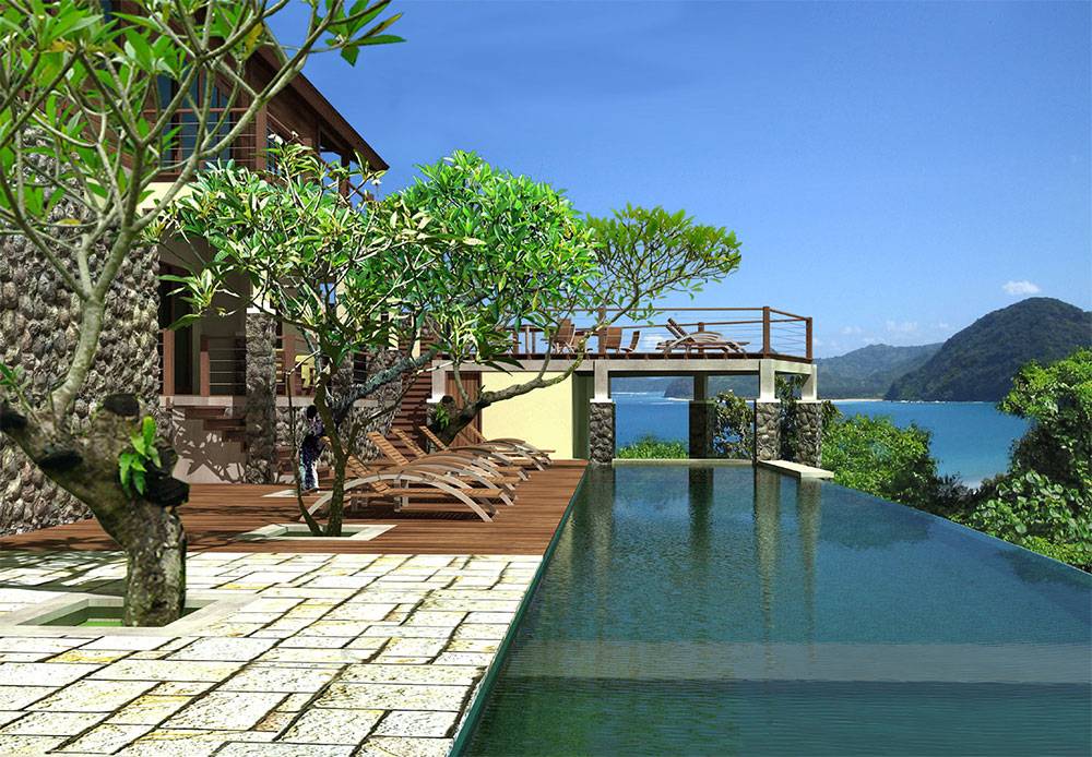 Architecturally, the villa adopts a contemporary tropical language, combining clean, restrained forms with climate-responsive elements such as deep overhangs, open plans, and natural materials. The composition balances solidity and openness, allowing the building to sit lightly within the landscape while offering comfort and protection from the elements.