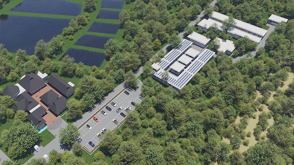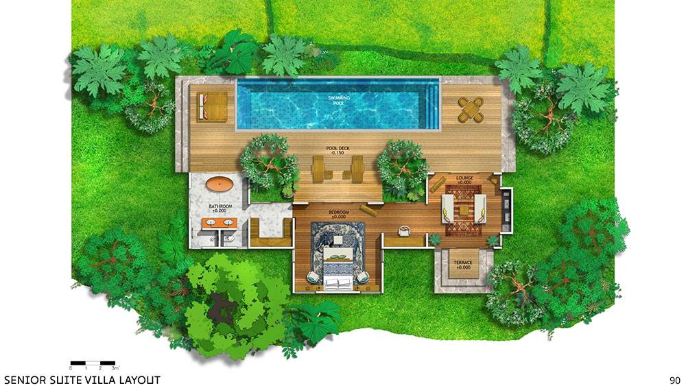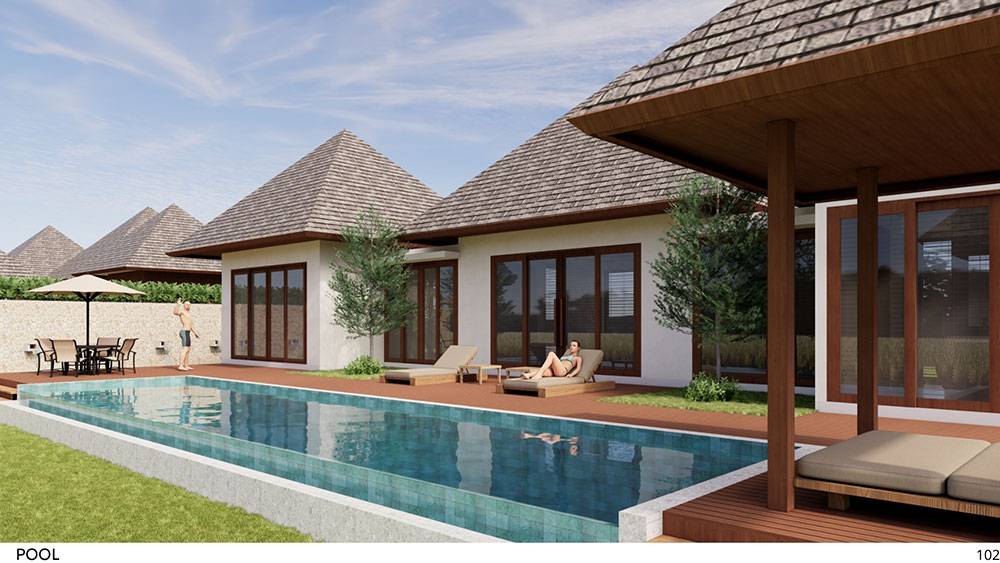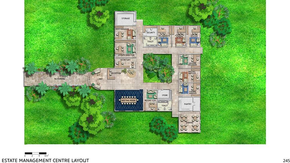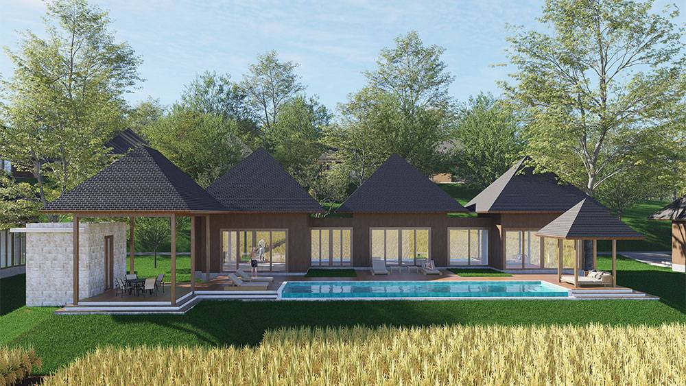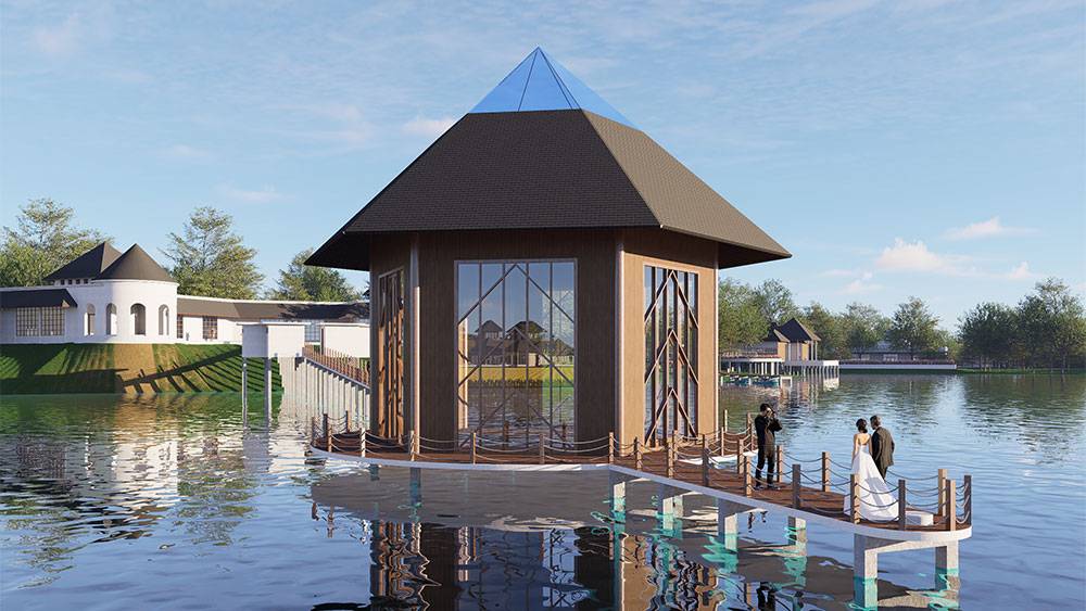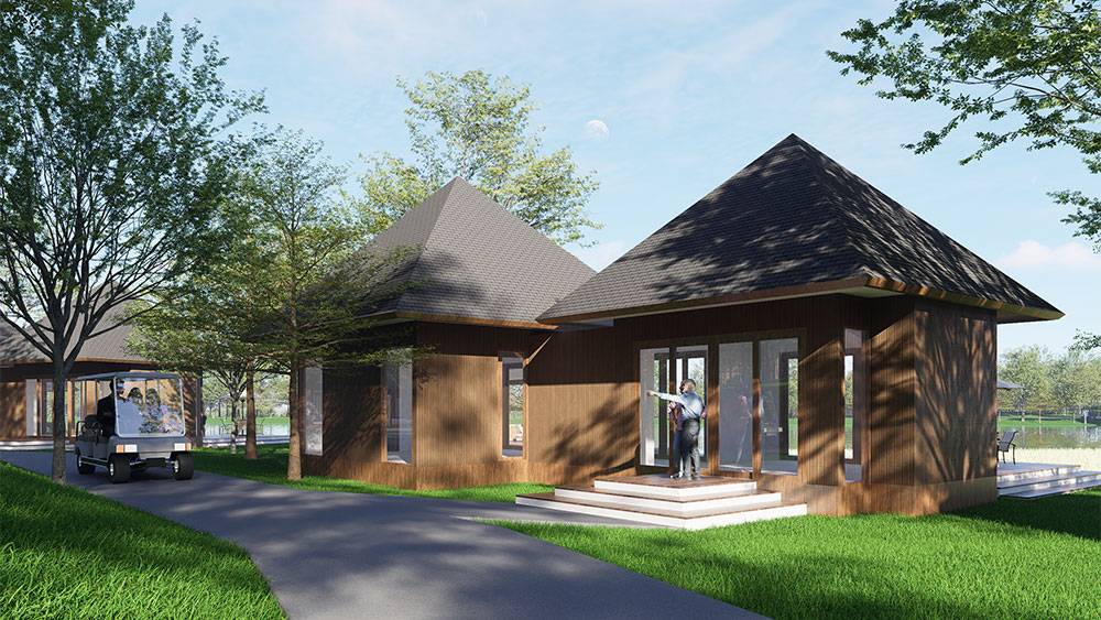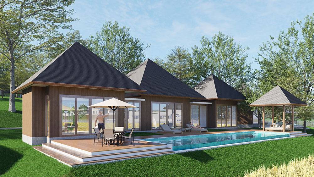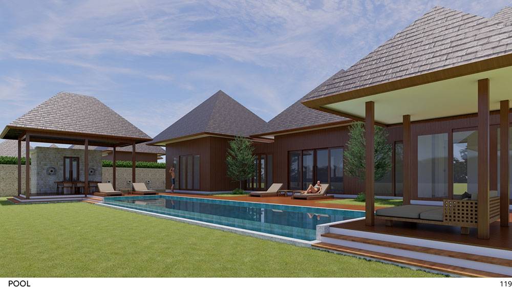 The masterplan adopts a clustered layout along the lakefront and the rubber tree–covered hills, carefully responding to the site’s topography and microclimate. Existing features, including the fish pond and chicken farm, are preserved and integrated into the overall spatial strategy, reinforcing the resort’s relationship with the land and local livelihoods.