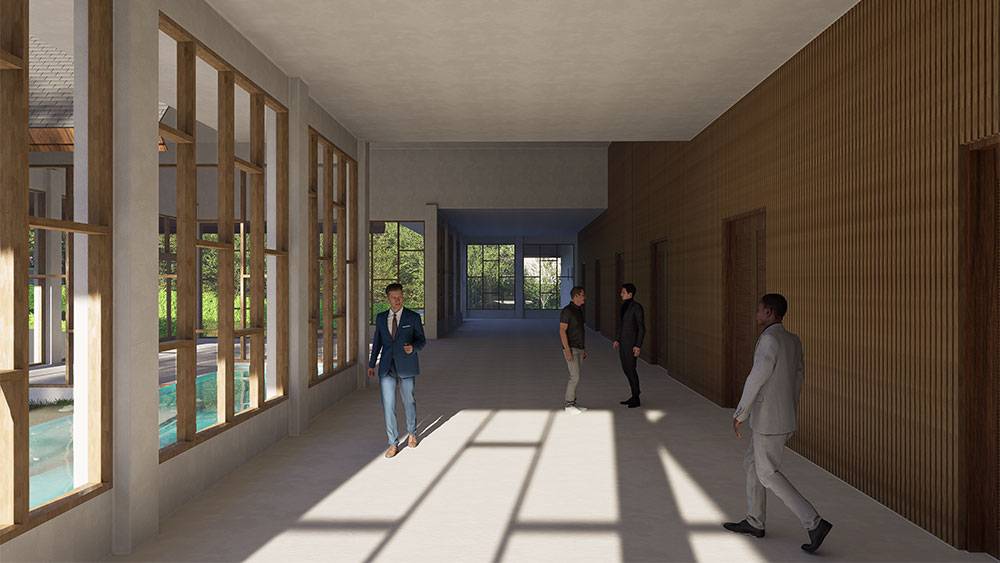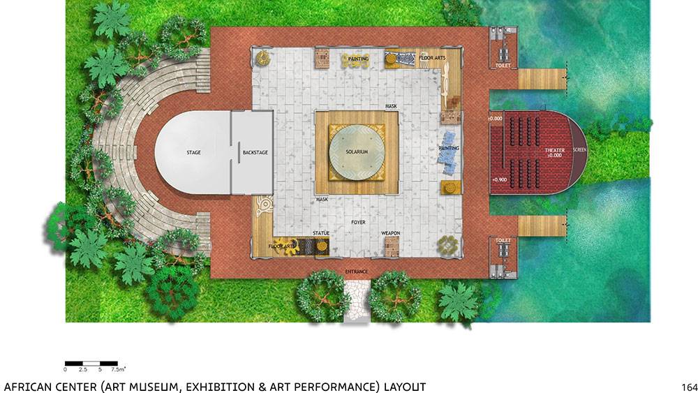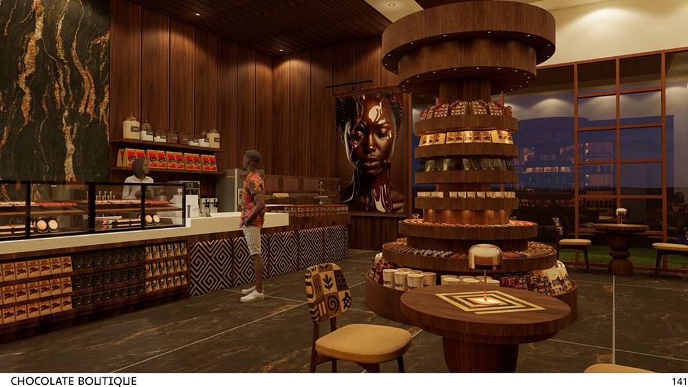 The architectural language is conceived as contemporary tropical, enriched with decorative motifs inspired by Ivory Coast culture. While initial surveys and reference materials were limited, subsequent design development will further integrate local architectural elements to deepen the project’s cultural authenticity.