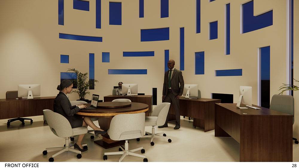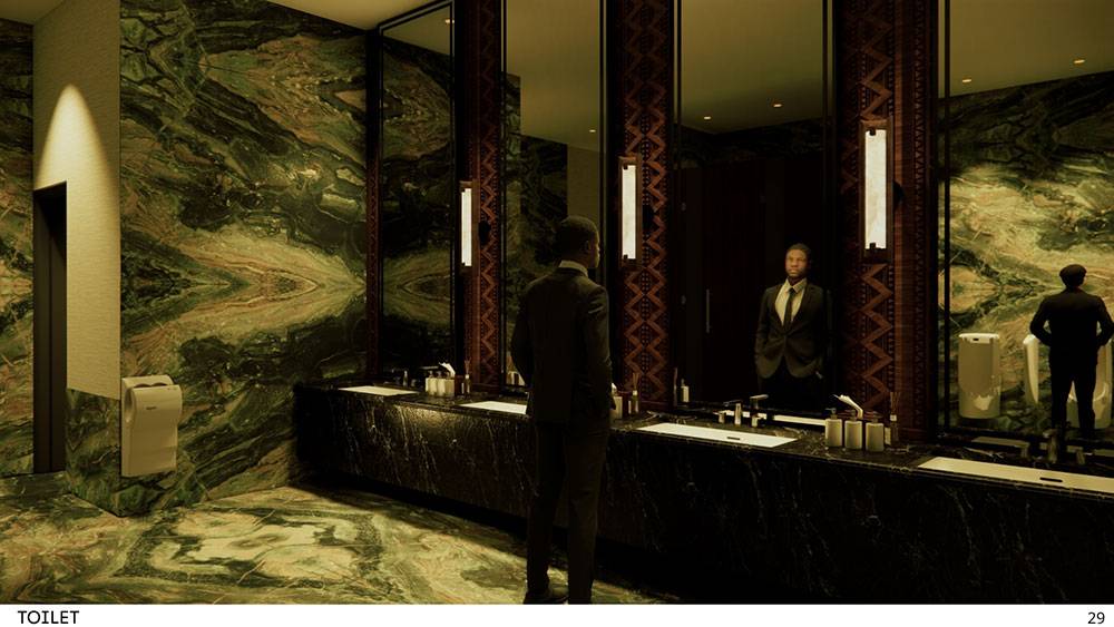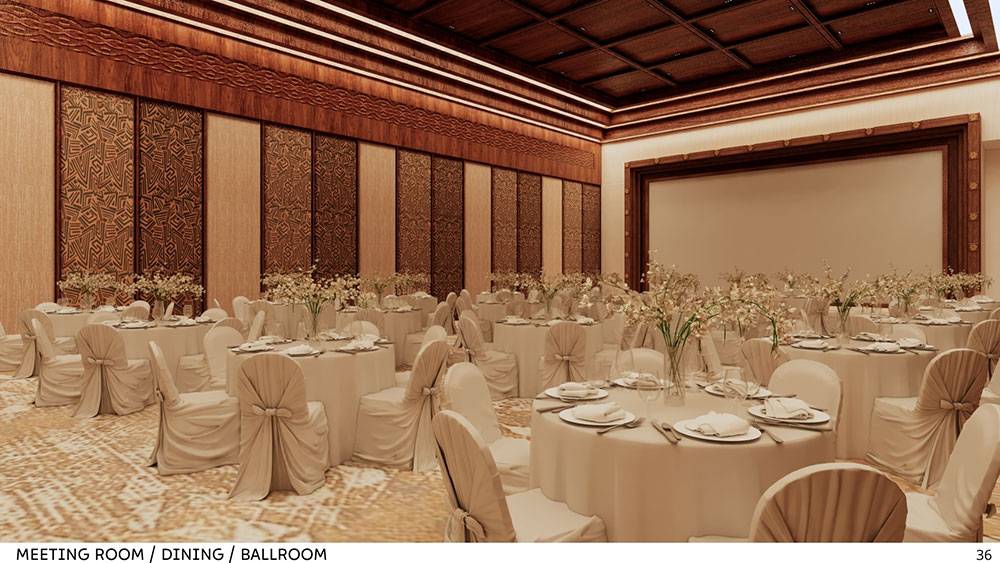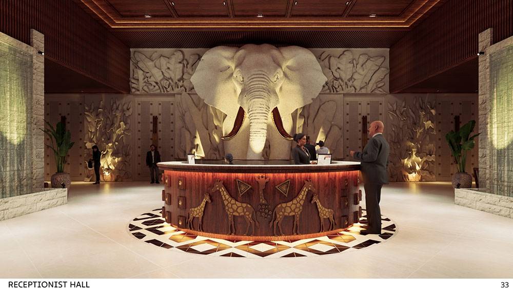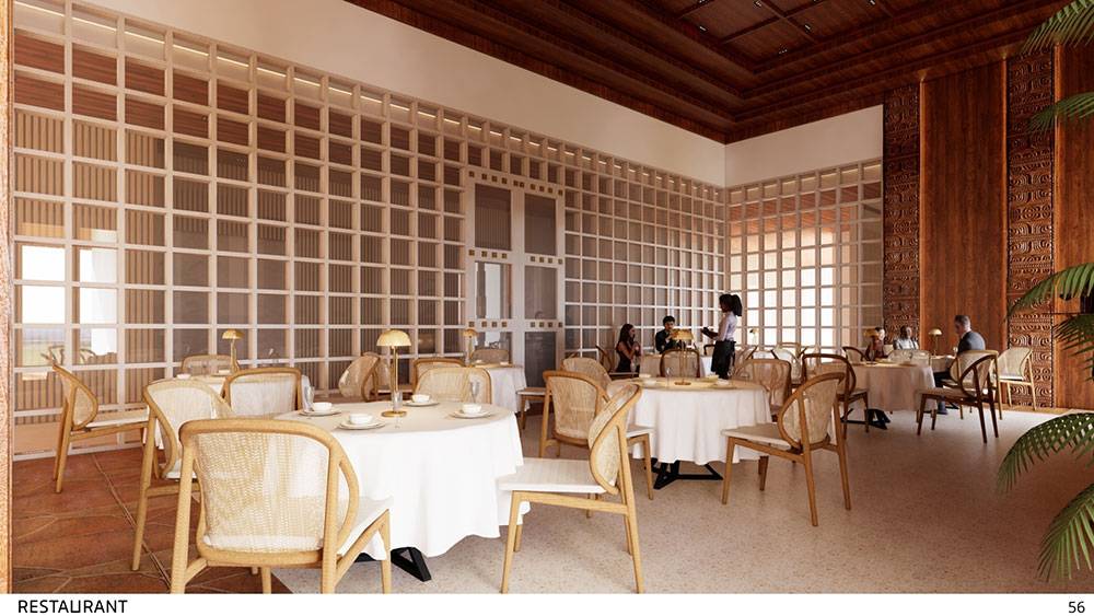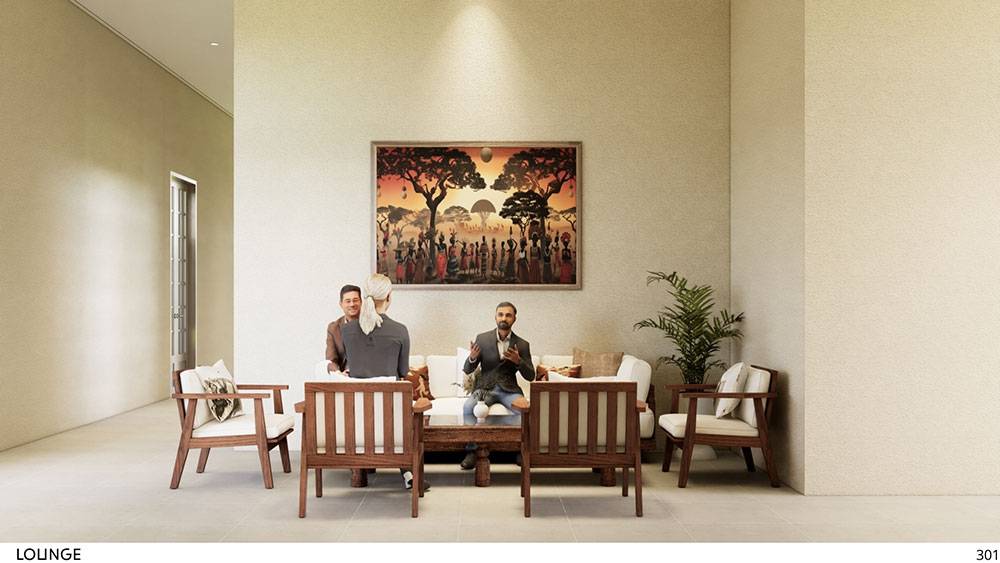 Interior spaces draw inspiration from traditional Adzope woven fabrics, expressed through warm, earthy tones and tactile textures. A dominant ivory-yellow hue—symbolic of Côte d’Ivoire’s elephants—forms the backdrop, celebrating national identity and cultural heritage. Local craftsmanship, art pieces, and handcrafted details will be integrated throughout to create interiors that are both refined and deeply rooted in place.
