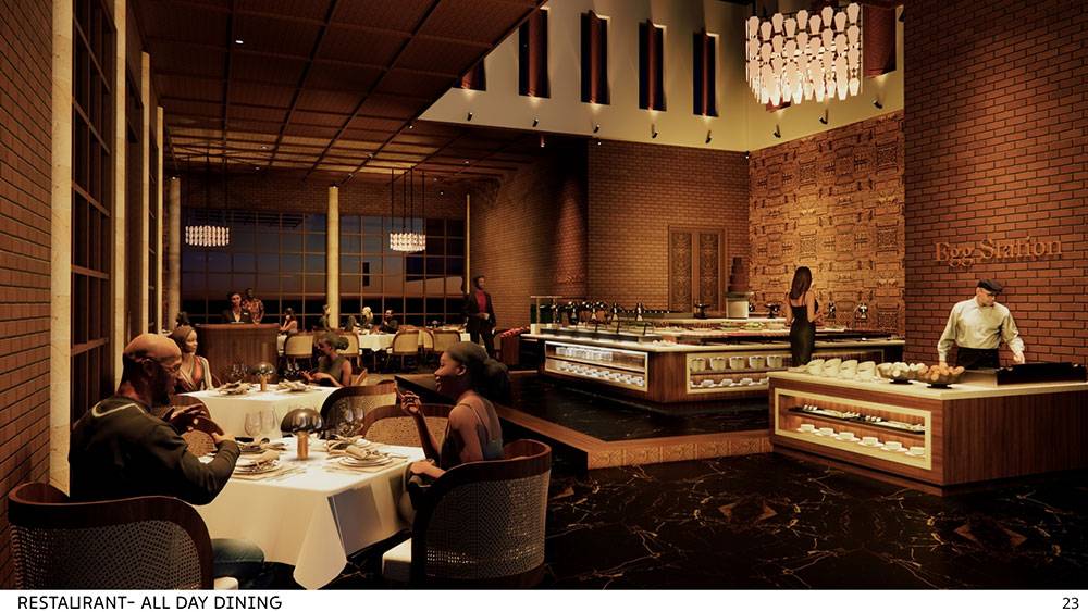 The color palette draws from the vibrant tones of Adzope textiles, delivering an authentically African aesthetic while maintaining a refined and contemporary hospitality standard.