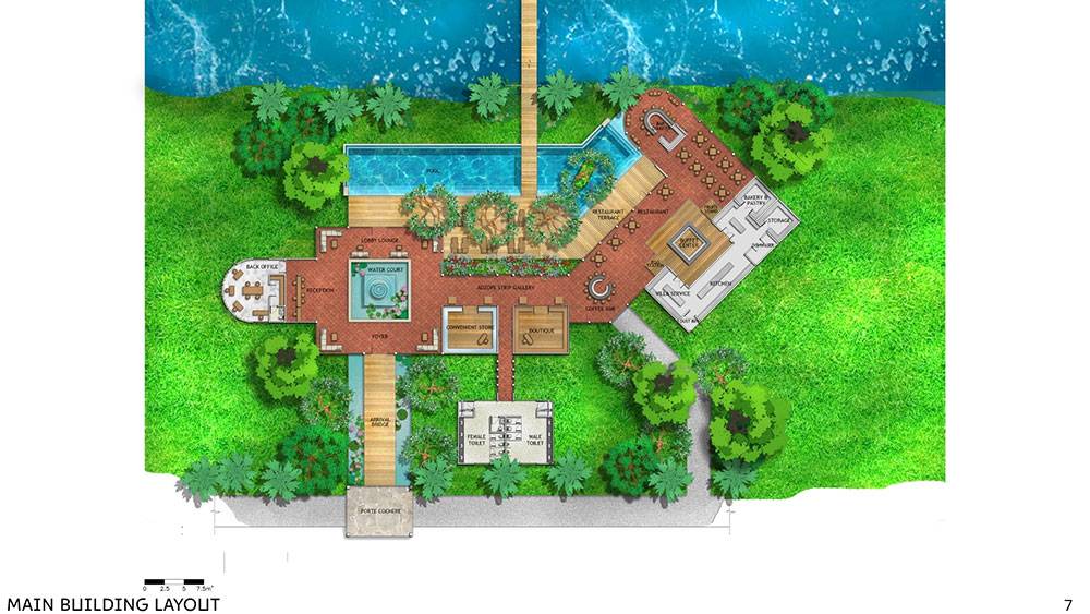 The initial concept for Oasis Resort was formulated through a synthesis of prior consultant studies, on-site observations of leading hotels and sustainable eco-lodges, and in-depth discussions with Mr. Patric and his team. These inputs informed a design approach that balances operational excellence, environmental responsibility, and a strong sense of place.