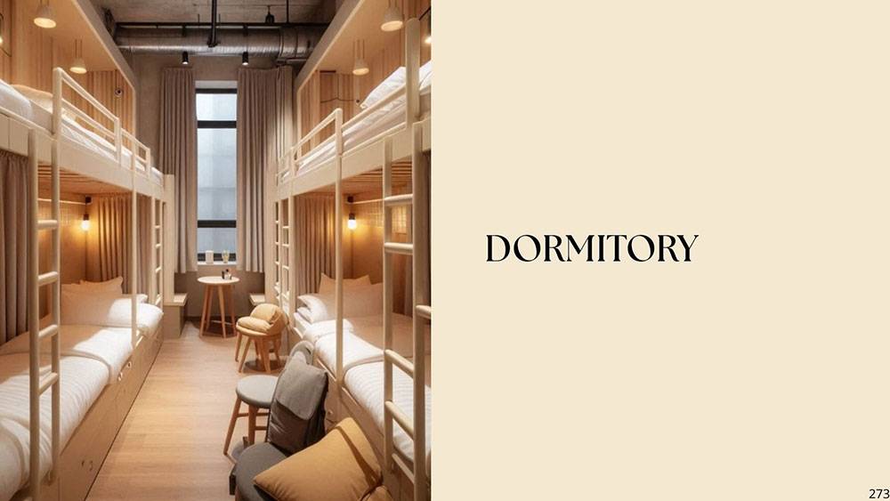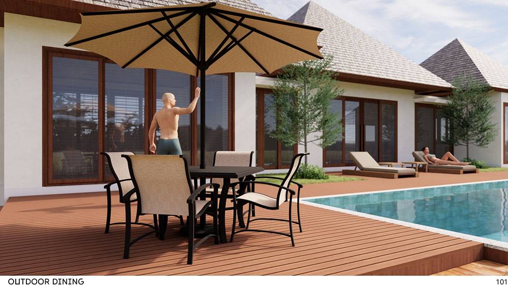 Furniture will be crafted from natural, lightweight, and durable materials that are resistant to UV exposure, moisture, and mold. Designs prioritize comfort, hygiene, and flexibility, allowing easy reconfiguration as needed.