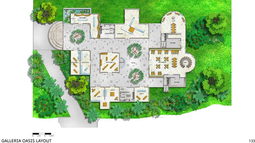The name Oasis reflects the aspiration to create a true sanctuary: a welcoming refuge for international and domestic travelers, a valued communal space for the surrounding community, and a protected habitat for local flora and fauna. The resort is envisioned as a living ecosystem where nature, people, and hospitality coexist in harmony.